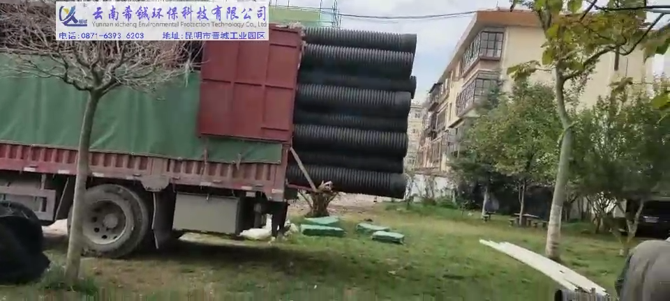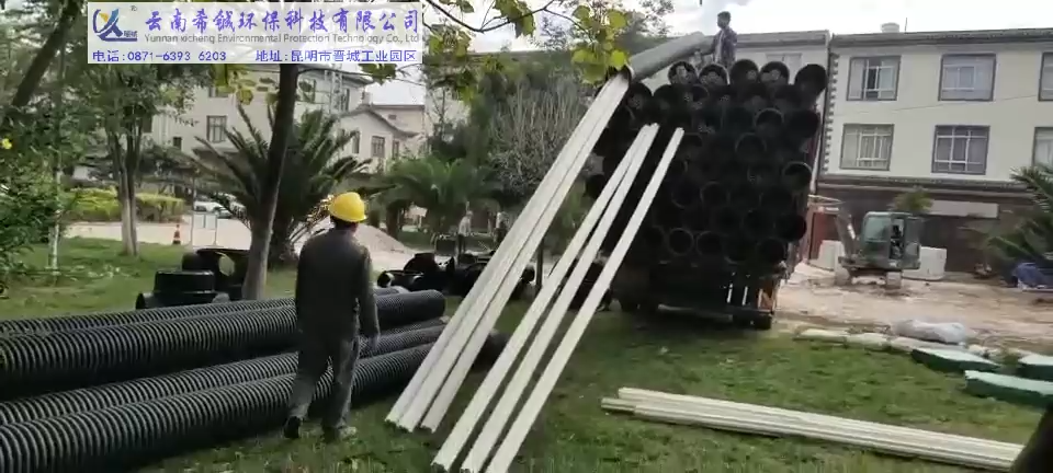 采用規格:HDPE雙壁波紋管客戶工地位置:曲靖云南方特(希鋮)環??萍加邢薰纠ッ魇袑?/em>